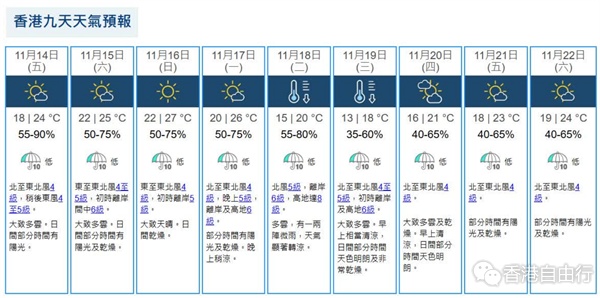 本港今日大致多云 打鼓岭气温低过17度 下周三跌至仅13度