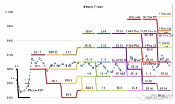 既然产能不足,那么“物以稀为贵”的道理自然适应于iPhone 8,再加上其本身“纪念版”的定位,所以售价达1000美元就不足为其了。另外通过iPhone近年来的售价变化图也可以看出,苹果不断通过提升存储容量等方式提升售价,以保持毛利率,全新设计、功能更强的iPhone 8自然更有理由卖得更贵。