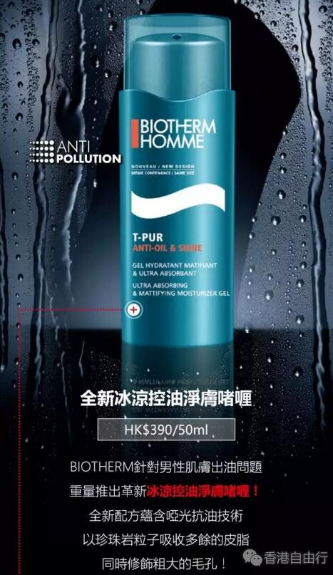 香港购物:碧欧泉BIOTHERM夏日抗油重“泉”出击,打造型男哑光肌!还有夏日补水福利