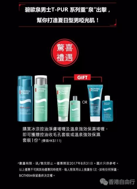 2017-08-22 微信红包微币天天送,关注微信号: hkziyouxing (长按左边红色字复制)获取福利和最新香港购物优惠折扣信息油光别找我,BIOTHERM三步解决各种“面子”问题!炎炎夏日,还需要各种补水产品,现在买还有折扣优惠。