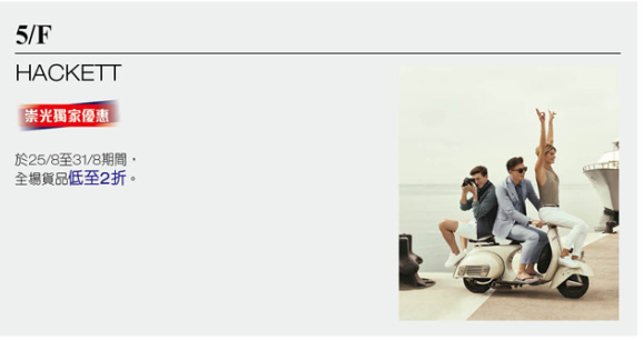 香港打折:SOGO崇光百货铜锣湾店本周最新优惠海报汇总(8月23至29日)