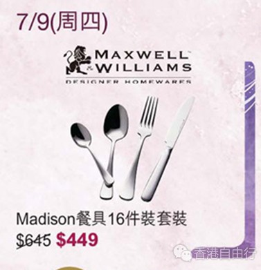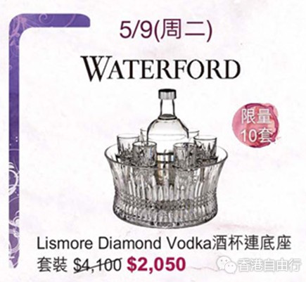 香港打折:SOGO崇光百货16F名牌餐具及酒具展(8月30至9月11日);