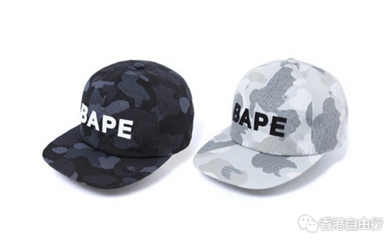 设计上则是以黑、灰色 DOT CAMO 迷彩印花贯穿始终,同时融入了「BAPE HEAD」和「猿人射击」印花呼应主题。
