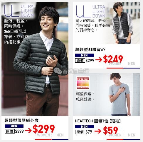 2017-09-30 微信红包微币天天送,关注微信号: hkziyouxing (长按左边红色字复制)获取福利和最新香港购物优惠折扣信息香港打折:超级黄金周买买买!优衣库uniqlo本周门市最新优惠(至10月5日)