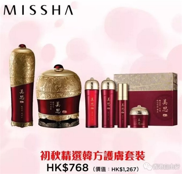 香港打折:MISSHA谜尚10月初秋换季优惠!唇妆、粉底、保湿套装低至$188