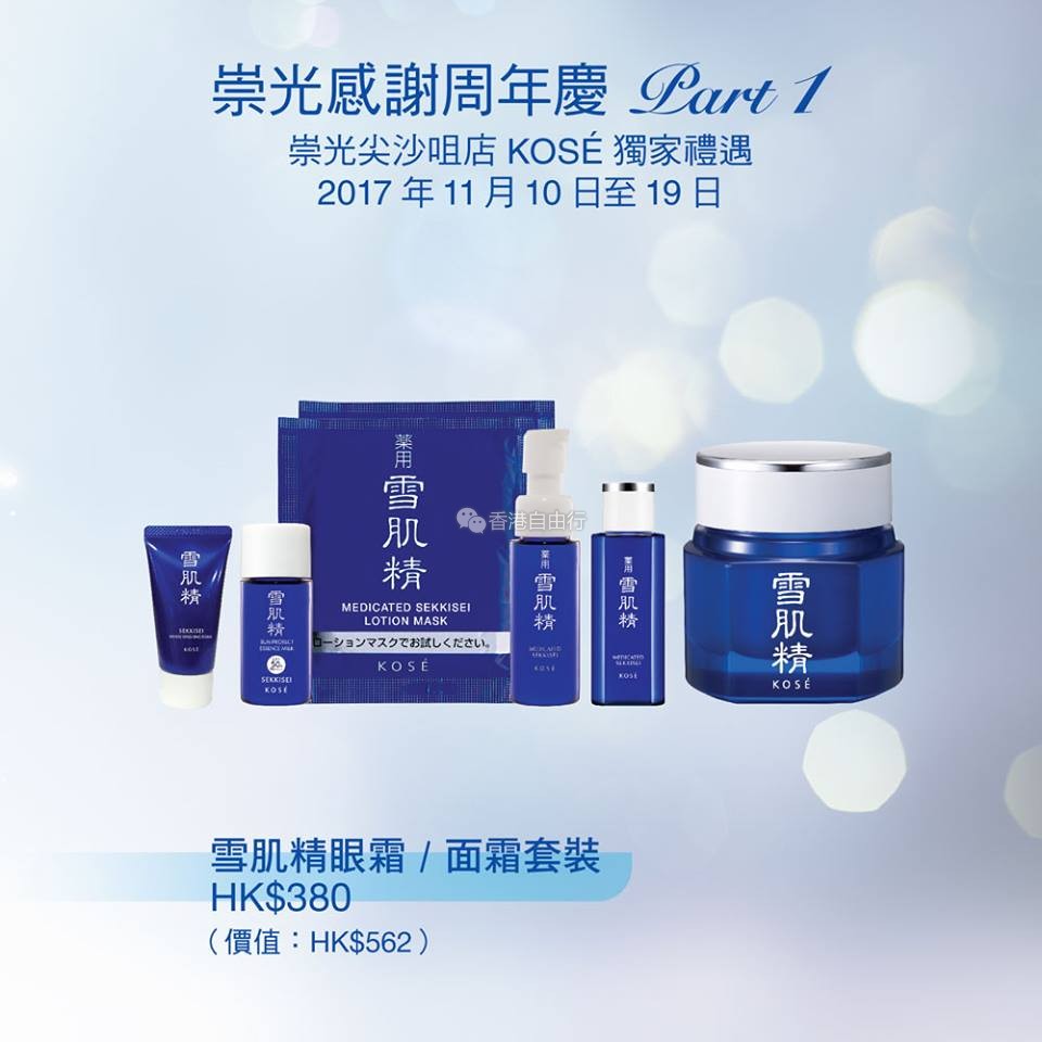 2017-11-07 微信红包微币天天送,关注微信号: hkziyouxing (长按左边红色字复制)获取福利和最新香港购物优惠折扣信息SOGO店庆 | KOSE雪肌精折扣套装61折起!