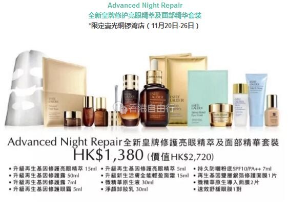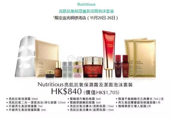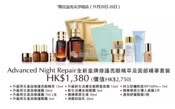 2017-11-17 微信红包微币天天送,关注微信号: hkziyouxing (长按左边红色字复制)获取福利和最新香港购物优惠折扣信息SOGO店庆 PART2 | 雅诗兰黛ESTĒE LAUDER限定优惠套装(附套装详情及价格)