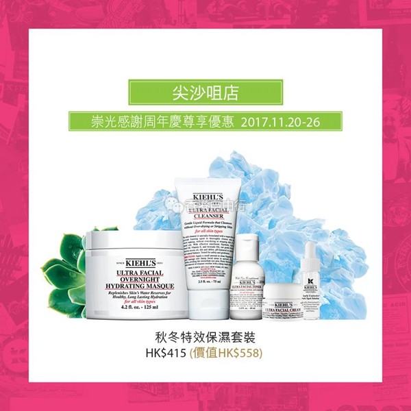 购买任何一套套装,即可以HK$230换购经典面膜套装一套(价值HK$328)。