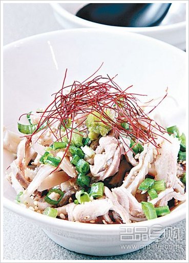 猪肚丝拌入日本的昆布酸汁和柚子胡椒,放上日本干辣椒丝,搅拌后吃,猪肚弹牙,又酸又辣,胃口大开。