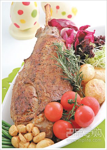 来自新西兰约重2公斤的羊髀,先用香叶、蒜头、杂菜及芥辣腌1日,再以180℃火烧45分钟,味道不膻又够嫩口。