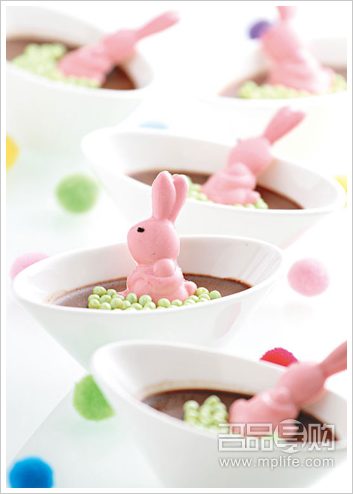香醇浓滑的朱古力布甸,顶着一只粉红色的朱古力兔仔,可爱度爆灯!