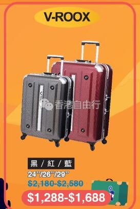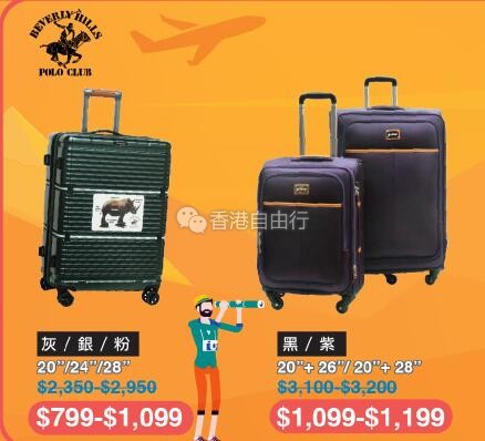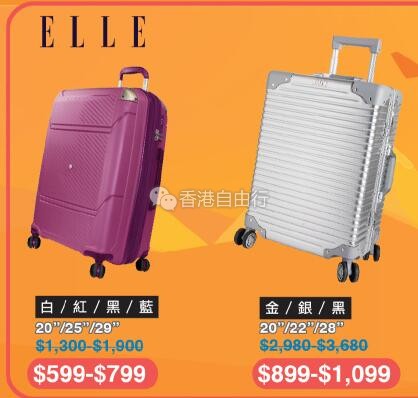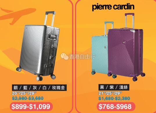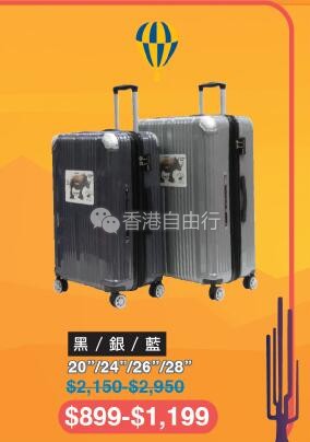 2018-08-06 微信红包微币天天送,关注微信号: hkziyouxing (长按左边红色字复制)获取福利和最新香港购物优惠折扣信息由即日起至8月13日多款品牌精选行李箱都有优惠,小至登机箱,大至30寸行李箱,什么SIZE都有,快来选购!