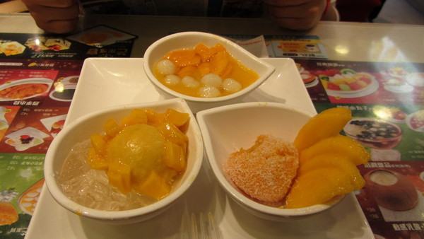 甜品店,,吃甜品还要排队,,晕。。右边的芒果双皮奶很嫩滑,入口即化,推荐。。。