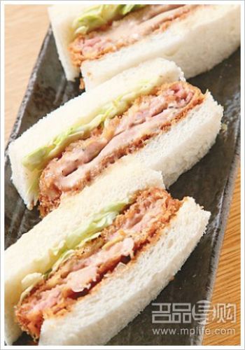 旺角豚组热卖;黑豚肉眼搅碎做成免治猪扒,当中加了芝士与沙律酱,用来做三文治,入口软绵,肉香与芝香绽放,是高级版猪扒三文治。
