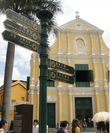 很好认,人多的地方就是景点了=。=!有个喷水池。此后就看着指示牌找大三巴吧,很好找哦,