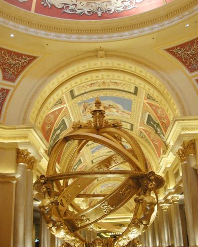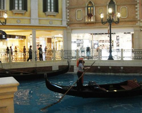在DFS beauty的右侧,出门,穿过马路,对面即是威尼斯人正门咯。进门后可看到大金球。寄存行李的就在左侧。看指示牌可直接上“大运河购物广场”