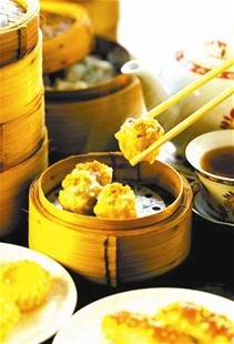 任何一个普通的清晨,选一家老牌的茶室,和相濡以沫的老伴挽手而入,看那热热闹闹的场景。点心盘乒乒乓乓,推车的老阿姨用悦耳的白话叫着“新鲜虾饺、烧卖、流沙包”,沏一壶铁观音,慢悠悠地叫几客点心来吃,仿佛几十年的时光就这样在唇齿间不知不觉地流过。
