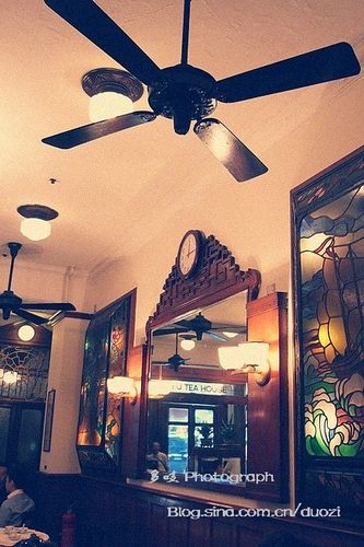 走进位于中环士丹利街的陆羽茶室,推开那扇古色古香的木玻璃门,时光仿佛倒转到半个世纪前的香港,啡色木质的正墙,红底黑字的对联,嵌着玻璃的镜子,酸枝花梨的家具,摆着粉彩花瓶的长桌,还有顶上老式的吊扇……完全是上世纪三四十年代混杂了岭南文化元素和少许西式装饰艺术的设计风格。