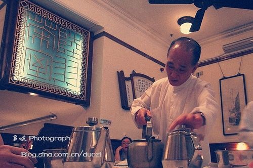 茶室的楼上有一间小具规模的茶仓,储藏的都是超过十五年的普洱,给茶客奉上的正是这种上好的茶。保持最原始的口味和最传统的装潢是陆羽茶室的待客风格,不必刻意怀旧,因为它骨子里就是正宗就是本尊。因为价格不菲,所以才保持着它的品味与精贵。陆羽28元一人的茶位费,乍一听觉得有点儿贵,但品过它的茶之后,绝对对得起这个价。