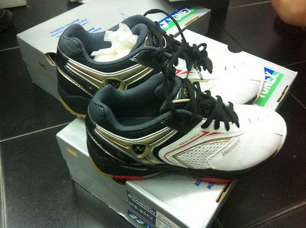 然后在一家2楼的YY专卖店买了3双羽毛球鞋,楼梯真心窄啊~虽然满大街都是卖波鞋的,可是买羽毛球鞋的还是很少,一抬头看到这个店的招牌马上跑上去啦~