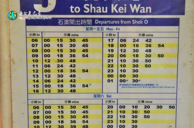 石澳开往筲箕湾的巴士时间表