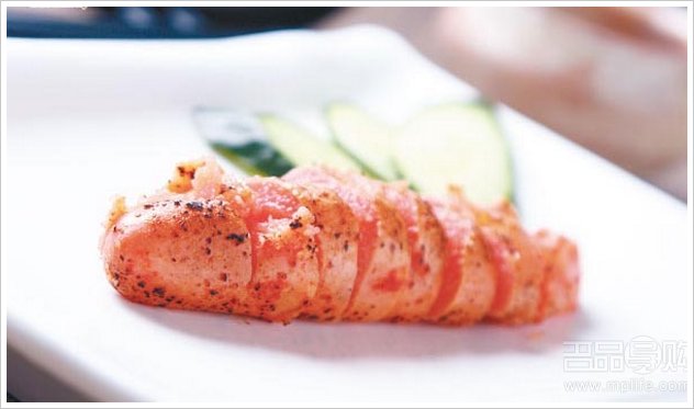 明太子由日本入口,是用鳕鱼子以盐、辣椒腌制,味道香而不太辣,烧香了,佐酒一流。