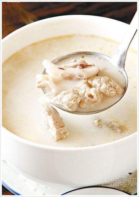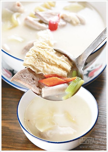 将猪肺放入原锅杏汁中炖4小时,由于杏汁是自家炮制,香味非常浓郁,猪肺爽口嫩滑。