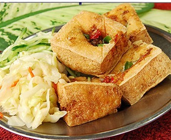 本来是浙江绍兴的传统小食,在上海一带处处可见。臭豆腐之所以奇臭无比,全靠把厚豆腐连「臭滷」(发酵液)及水分,放入密不透气的容器内发酵而成。