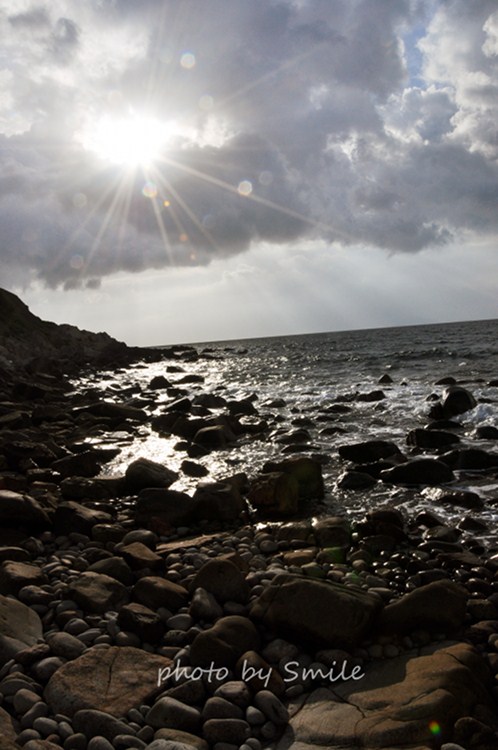 但是日出的时候,我们依然五点就起来了,下到礁石,琢磨着那些跳下去游的冲动。日出被可恶的云层挡住了,只偶尔放出一束金光,投射在平静的海面。虽然只是一瞬间,但我喜欢这样的惊喜!