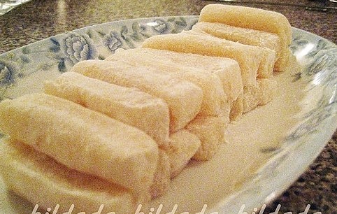 小时家穷,吃不起矜贵的燕窝糕、云片糕,只好吃香蕉糕。记得廿年前旺角花园街水静鹅飞时期奇趣已有得卖,一大盆香蕉糕摆在门前,足足二三百件,一个早上已卖光。廿年后奇趣始终如一,香蕉糕依然大大盆不愁卖,老板兼师傅的张生亲力亲為,用熟糯米粉、糖水和香蕉油,一搓即成,秘诀是用暖的糖水令糕身又软又糯,放一天半天仍可不硬身。香蕉糕的确软熟香甜,淡淡香蕉油味不抢。