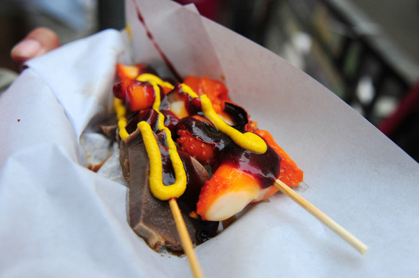 西洋菜南街的一家卖串串的店前排起长队,貌似一直是这么多人,凑个热闹买个芥末章鱼吃吃,味道确实不错