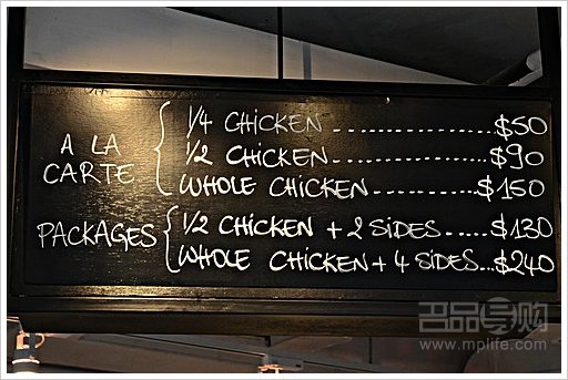 看看餐牌,可选四分一、半只或全只鸡,价钱由$50起,亦有沙律、烤鸡三文治、蛋批及甜品供应。这里更设有午市套餐,烤鸡四分一只加配菜及餐汤,价钱都是$68,相信会为上环这一带上班一族提供多个选择。