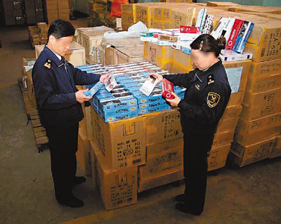 内地海关关员搜获大量走私烟,当中很多是假烟