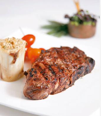 简单地以海盐及黑椒调味并以火山石炉烤,烤至 3、4 成熟,中间呈完美的粉红色,油脂半融,配上homemade、吊足4、5日的牛肉浓汁同吃,浓香有味。