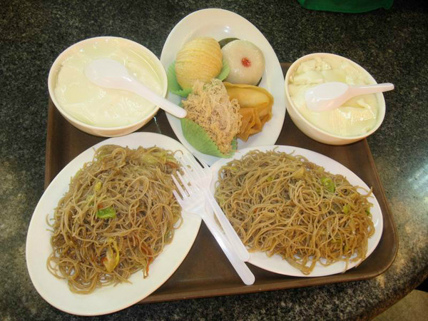 在宝莲寺内吃斋饭(一碗豆腐花,一盘炒米粉,小吃两样,一人一份)。