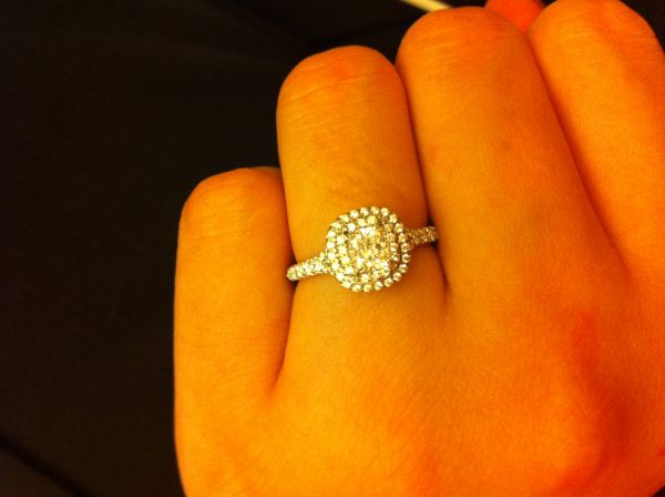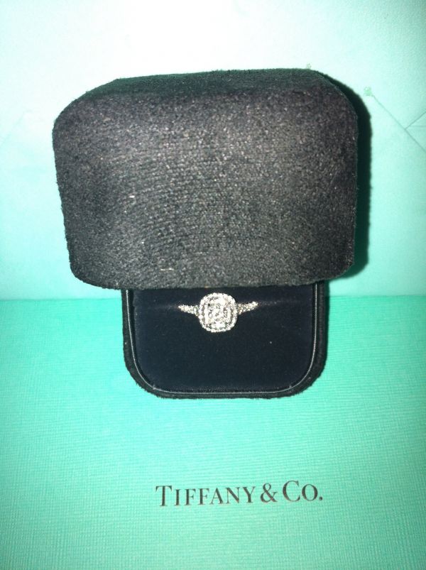 我们去的是圆方店,有两层,二层主卖钻戒和对戒!看番里买TIFFANY家钻戒的番友买的都是经典款,但LZ不是很喜欢,到很是中意TIFFANY SOLESTE,中间一颗主钻,围绕两圈碎钻的枕形钻戒,LZ觉得很有复古的味道!嘿嘿~当天没有合适的,但店员SIKI非常热情,帮我查到一款4C和价钱都比较合适的!由于第二三天分别去迪士尼和海洋公园,我们选择定在第三天晚上来看戒指!废话不多说!上图!
