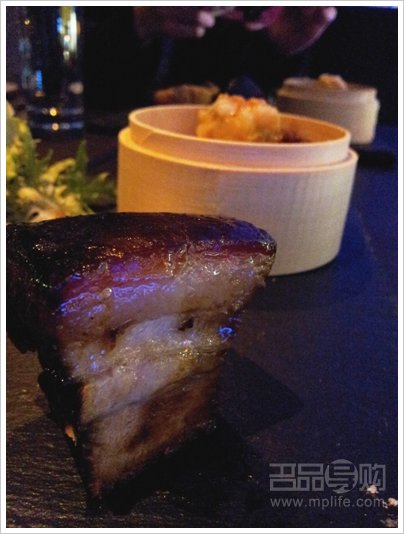 大厨特意保留中国传统煮法以蒸的方法制作鲈鱼但大厨并无单单以葱花豉油作调味反而用上白露笋作配料由于白露笋带苦涩味所以大厨特别以蔬菜汤、牛油、糖等煮熟去除白露笋的苦涩味再以海胆煮成幼滑芡汁令整个蒸鲈鱼变得不传统鲜而不腻