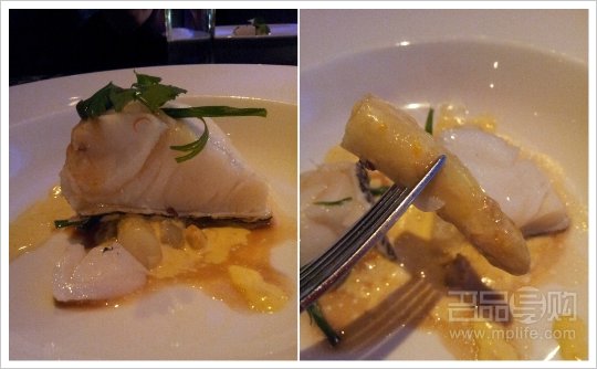 菜式(五):蒸澳洲鲈鱼柳配白露笋海胆汁