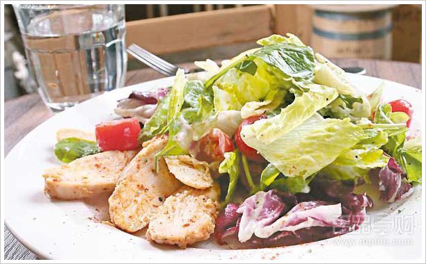 青翠绿叶伴以暖身烤鸡块,偏干身但有Paprika辣椒微辛,食味不单调。
