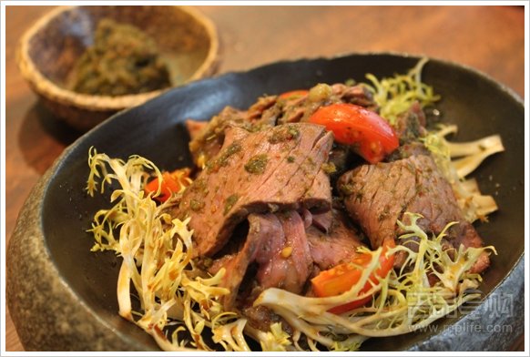 Zanzo的下酒菜多以浓味为主。「秘制南美酱汁烤和牛西冷沙律」用上了M8和牛慢煮而成。但亮点在于秘制的南美酱汁,内含多种香草及香料,其中不乏墨西哥辣椒及牛至(oregano),味道酸中带辣,十分惹味,是当地配搭牛排的传统酱汁之一。