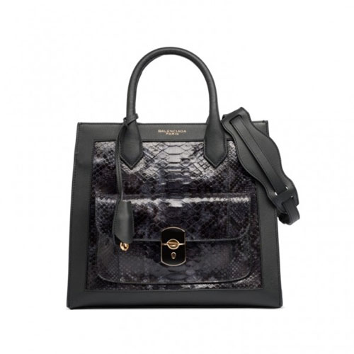Balenciaga为蛇年专门推出的蛇皮手袋包括Papier及Padlock手袋。经典的款式采用黑色为主色调,拼接的蛇皮让这些包袋看起来更为狂野摩登。以大号手提款为主的包包更保证了超高的利用率。