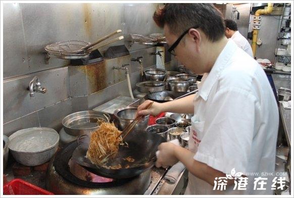 主厨加入特制的酱油,增加味道的层次及为面条「上色」。面条上桌时应为彻底的干身,碟底无油而面条大致完整的为隽品。入口干身但芽菜依然爽口,制作比一般的粉面更花心机及时间,难怪能成为酒家的镇店推介了。