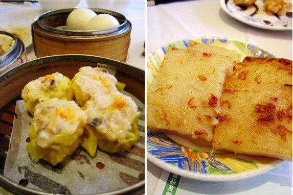 这里的两道招牌菜:烧麦和萝卜糕,几乎每桌必点——