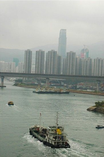 巴士驶出机场,过大屿山,那天是阴天。运气好的是并没下大雨。