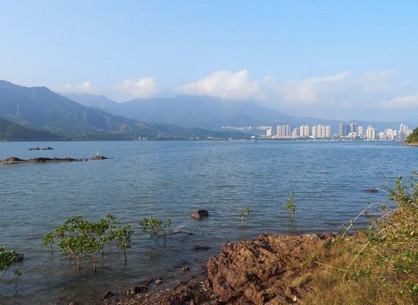 沿着海边行走,远远的望见了深圳的最高山梧桐山。 可以想见,在梧桐山顶俯看整个沙头角边境的话,视野将是多么的精彩!