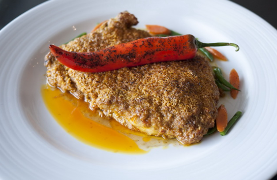 “葡式海鲜饭”类似上海的泡饭质感,但不会水汪汪地一片,米粒温润湿滑。由虾、鱼、蚬加番茄、白酒、橄榄油煮出的高汤有着极浓厚的海鲜味,却没有藏红花的味道,不论滋味和口感和西班牙海鲜饭很不一样。另一道“非洲鸡”却也并不是非洲传来,而是典型的澳门葡国菜,二十多种材料制作的酱料铺满在香腌鸡的表面,入口就有刺激又复杂的香气。