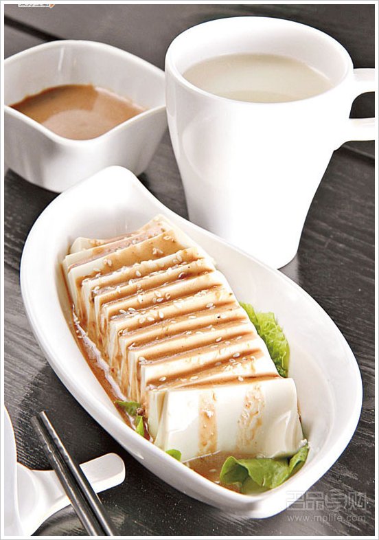 本是普通冻豆腐,创意十足的大厨则想到配涮羊肉的美味灵魂─麻酱,淋上面吃,啖啖都是花生芝麻香。