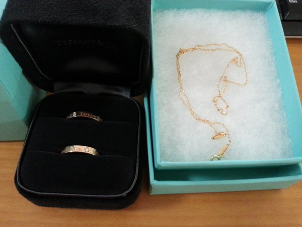 后来比较蒂芙尼的,14分小钻,18k黄金8800. 就在t家买了。下次有机会买卡地亚铂金款,还是挺喜欢的。