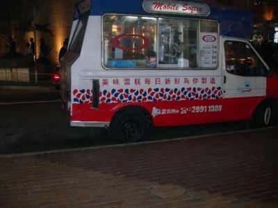 街边的制作新鲜冰激凌车上的8元一支的蛋卷冰激凌,新鲜出炉的冰激凌奶味醇厚,尤其是它的蛋卷酥且脆,非常好吃。