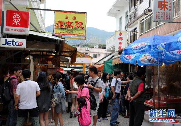 5月1日,游客在大澳水乡景点杨侯古庙参观。